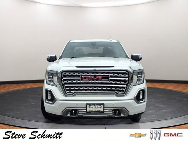 Recent Arrival! 2019 GMC Sierra 1500 Denali White Frost Tricoat Clean CARFAX. Odometer is 21241 miles below market average!If you're looking for a new car, truck or SUV near St. Louis or Edwardsville, then look no further than Steve Schmitt Inc. At our Highland dealership, we have a large variety of Chevy, Buick, and GMC models, all just ripe for the picking. Steve Schmitt has delivered four generations of Customer Service...right here in Highland! Steve Sr. Plays an active role in the dealership as well as the community, and Steve Jr. Manages the day-to-day operations. At Steve Schmitt Chevy Buick GMC, it is more than a name on a sign...it is our family looking forward to exceeding your family's expectations! This vehicles includes the following features Denali Ultimate Package (GMC MultiPro Power Steps, Power Sunroof, and Trailer Tire Pressure Monitor System), Driver Alert Package I (Lane Change Alert w/Side Blind Zone Alert, Rear Cross Traffic Alert, and Ultrasonic Front & Rear Park Assist), Driver Alert Package II (Following Distance Indicator, Forward Collision Alert, Front Pedestrian Braking, IntelliBeam Automatic High Beam On/Off, Lane Keep Assist w/Lane Departure Warning, and Low Speed Forward Automatic Braking), Preferred Equipment Group 5SA (12-Volt Rear Auxiliary Power Outlet, 120-Volt Bed Mounted Power Outlet, 120-Volt Instrument Panel Power Outlet, 170 Amp Alternator, 2 USB Ports, 2 USB Ports (1st Row), Auxiliary External Transmission Oil Cooler, Chrome Assist Steps, Chrome Recovery Hooks, Color-Keyed Carpeting Floor Covering, Compass, Deep-Tinted Glass, Electric Rear-Window Defogger, Electrical Lock Control Steering Column, Floor Mounted Console, GMC 4G LTE, GMC Connected Access, HD Radio, HD Rear Vision Camera, Heated 2nd Row Outboard Seats, Heated Driver & Front Passenger Seating, Heavy-Duty Rear Locking Differential, High-Capacity Air Filter, Hill Descent Control, Hitch Guidance, Hitch Guidance w/Hitch View, In-Vehicle Trailering App, Integrated Trailer Brake Controller, Keyless Open & Start, LED Cargo Area Lighting, Manual Tilt-Wheel & Telescoping Steering Column, OnStar & GMC Connected Services Capable, Power Door Locks, Power Front Passenger Windows w/Express Up/Down, Power Front Windows w/Driver Express Up/Down, Power Rear Windows w/Express Down, Power Sliding Rear Window w/Rear Defogger, Rear Dual USB Charging-Only Ports, Rear Wheelhouse Liners, Remote Vehicle Starter System, Safety Alert Seat, Signature Denali Grille, Spray-On Pickup Bed Liner w/Denali Logo, Steering Wheel Audio Controls, Theft Deterrent System (Unauthorized Entry), Universal Home Remote, Ventilated Driver & Front Passenger Seats, and Wireless Charging), Technology Package (HD Surround Vision, Multi-Color 15 Diagonal Head-Up Display, and Rear Camera Mirror), Trailering Package, 10-Way Power Driver Seat Adjuster w/Lumbar, 10-Way Power Passenger Seat Adjuster w/Lumbar, 3.23 Rear Axle Ratio, 4-Wheel Disc Brakes, 7 Speakers, ABS brakes, Adaptive Ride Control Suspension, Adaptive suspension, Air Conditioning, Alloy wheels, AM/FM radio: SiriusXM, Apple CarPlay/Android Auto, Auto-dimming door mirrors, Auto-dimming Rear-View mirror, Automatic temperature control, Brake assist, Bumpers: body-color, Cat-Back Performance Exhaust (LPO), Delay-off headlights, Driver door bin, Driver Memory, Driver vanity mirror, Dual front impact airbags, Dual front side impact airbags, Electronic Stability Control, Forge Perforated Leather-Appointed Seat Trim, Front anti-roll bar, Front Bucket Seats, Front Center Armrest, Front dual zone A/C, Front fog lights, Front License Plate Kit, Front reading lights, Front wheel independent suspension, Fully automatic headlights, Garage door transmitter, Genuine wood console insert, Genuine wood door panel insert, Heated door mirrors, Heated front seats, Heated rear seats, Heated steering wheel, Illuminated entry, Lockable Console Vault (LPO), Low tire pressure warning, Memory seat, Navigation System, Occupant sen