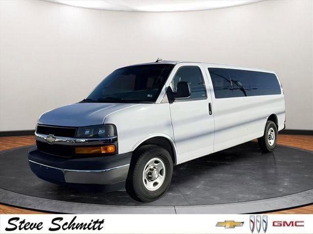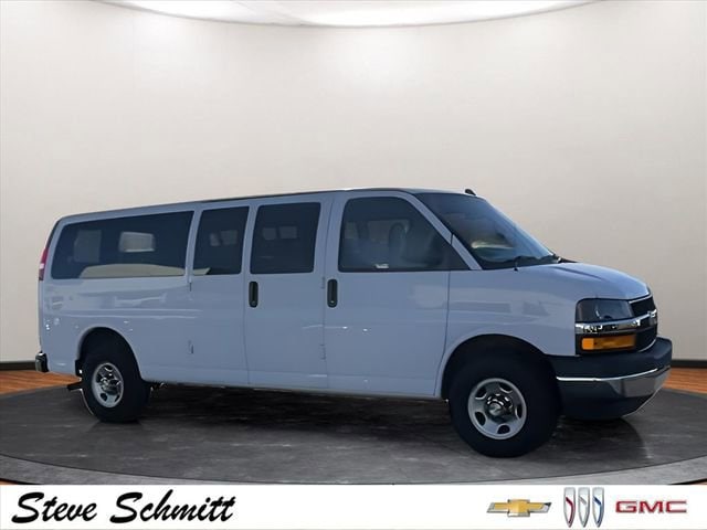 If you're looking for a new car, truck or SUV near St. Louis or Edwardsville, then look no further than Steve Schmitt Inc. At our Highland dealership, we have a large variety of Chevy, Buick, and GMC models, all just ripe for the picking. Steve Schmitt has delivered four generations of Customer Service...right here in Highland! Steve Sr. Plays an active role in the dealership as well as the community, and Steve Jr. Manages the day-to-day operations. At Steve Schmitt Chevy Buick GMC, it is more than a name on a sign...it is our family looking forward to exceeding your family's expectations! This vehicles includes the following features Chrome Appearance Package (Chrome Grille and Front & Rear Chrome Bumpers w/Step-Pad), Preferred Equipment Group 1LT (Deluxe Console w/Swing Out Storage Bin, Forward Collision Alert, Full-Floor Color-Keyed Carpeting, Lane Departure Warning System, Remote Keyless Entry, Theft Alarm Notification, and Wheel Trim w/Chrome Center Caps), 12-Passenger Seating (2-3-3-4 Seating Config), 15-Passenger Seating (2-3-3-3-4 Seating Config), 16 x 6.5 Steel Wheels, 2 Speakers, 3.42 Rear Axle Ratio, 3rd row seats: bench, 4-Wheel Disc Brakes, 4th-Row Bench Seat, ABS brakes, Air Conditioning, AM/FM radio, AM/FM Stereo w/MP3 Player, Bumpers: chrome, Compass, Custom Cloth Seat Trim, Delay-off headlights, Driver door bin, Driver vanity mirror, Driver's Seat Mounted Armrest, Dual front impact airbags, Dual front side impact airbags, Electronic Stability Control, Emergency communication system, Exterior Parking Camera Rear, Front anti-roll bar, Front Bucket Seats, Front reading lights, Front wheel independent suspension, Fully automatic headlights, Heavy-Duty Rear Locking Differential, Illuminated entry, Low tire pressure warning, Occupant sensing airbag, Overhead airbag, Panic alarm, Passenger cancellable airbag, Passenger door bin, Passenger seat mounted armrest, Passenger vanity mirror, Power steering, Power windows, Power-Adjustable Black Outside Heated Mirrors, Rear air conditioning, Rear reading lights, Reclining Front Bucket Seats w/Inboard Armrests, Remote keyless entry, Security system, Speed control, Tachometer, Tilt steering wheel, Traction control, Trip computer, Variably intermittent wipers, and Voltmeter.
