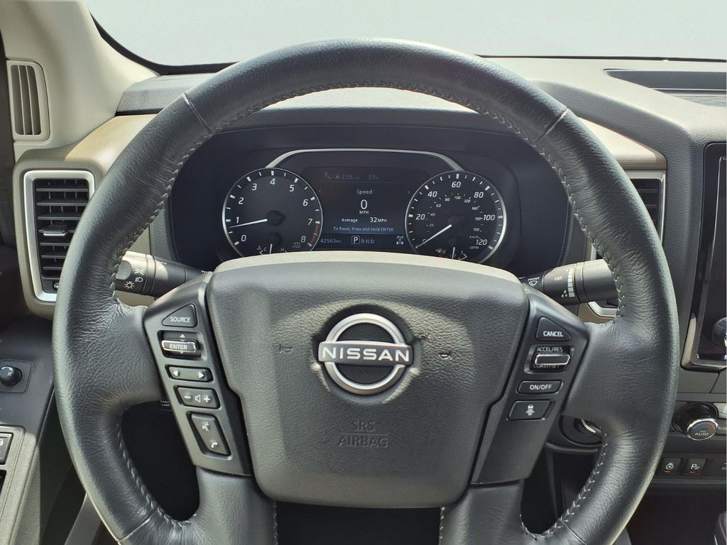 This Frontier SV is equipped with an impressive array of features designed to enhance your driving experience. The SV Comfort & Convenience Package includes a remote engine starter, heated steering wheel, and dual-zone automatic climate control, ensuring your comfort no matter the weather. The Technology Package takes safety to the next level with advanced driver assistance features like Blind Spot Warning, Rear Automatic Braking, and Lane Departure Warning.