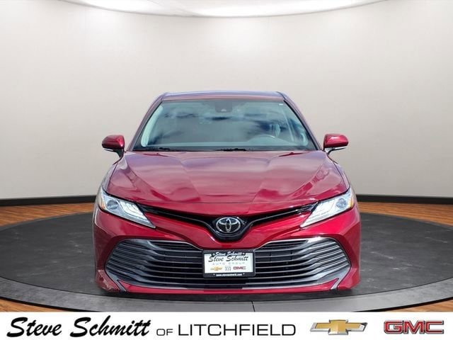 Recent Arrival! Camry XLE Ruby Clean CARFAX. CARFAX One-Owner. Black Leather. 28/39 City/Highway MPGAwards:* 2019 KBB.com 10 Most Comfortable Cars Under $30,000 * 2019 KBB.com 10 Best Sedans Under $30,000 * 2019 KBB.com Best Resale Value Awards * 2019 KBB.com Brand Image AwardsCall us at 877-211-4231. At Steve Schmitt of Litchfield we are committed to meeting your highest expectations in all aspects of our business and delivering outstanding customer service while helping you find the vehicle of your dreams. Steve Schmitt of Litchfield is your Litchfield Illinois Buick Chevrolet GMC and Cadillac dealer that offers customers the most modern and convenient access to useful information and satisfying service online. Call 877-211-4231. TEST DRIVE TODAY! This vehicle includes the following features - All-Weather Floor Liner Package, Navigation Package (Radio: Entune 3.0 Premium Audio w/JBL w/Clari-Fi), Black Leather, 4-Wheel Disc Brakes, 6 Speakers, ABS brakes, Air Conditioning, Alloy wheels, AM/FM radio: SiriusXM, Apple CarPlay, Auto High-beam Headlights, Auto-dimming Rear-View mirror, Automatic temperature control, Brake assist, Bumpers: body-color, CD player, Compass, Delay-off headlights, Driver door bin, Driver vanity mirror, Dual front impact airbags, Dual front side impact airbags, Electronic Stability Control, Emergency communication system: Safety Connect, Exterior Parking Camera Rear, Four wheel independent suspension, Front anti-roll bar, Front Bucket Seats, Front Center Armrest, Front dual zone A/C, Front reading lights, Fully automatic headlights, Garage door transmitter: HomeLink, Heated door mirrors, Heated front seats, Illuminated entry, Knee airbag, Leather Shift Knob, Low tire pressure warning, Multi-Stage Heated Front Bucket Seats, Occupant sensing airbag, Outside temperature display, Overhead airbag, Overhead console, Panic alarm, Passenger door bin, Passenger vanity mirror, Power door mirrors, Power driver seat, Power passenger seat, Power steering, Power windows, Quilted Perforated Leather Seat Trim, Radio data system, Radio: Entune 3.0 Audio Plus w/App Suite, Rear anti-roll bar, Rear Bumper Applique (Clear), Rear reading lights, Rear seat center armrest, Rear side impact airbag, Rear window defroster, Remote keyless entry, Security system, Speed control, Speed-sensing steering, Split folding rear seat, Steering wheel mounted audio controls, Tachometer, Telescoping steering wheel, Tilt steering wheel, Traction control, Trip computer, Turn signal indicator mirrors, Variably intermittent wipers, and Wheels: 8.0J x 18 Chrome Machined-Finish Alloy.